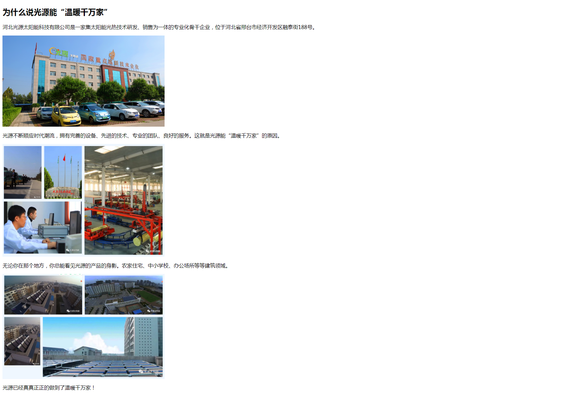 Copyright(C)2021 河北光源太陽能 E-mail: hbguangyuan@163.com 地址: 邢臺經(jīng)濟(jì)開發(fā)區(qū)王快鎮(zhèn)北屋村永安路2199號 關(guān)于光源 | 公司動態(tài) | 聯(lián)系我們 | 法律聲明